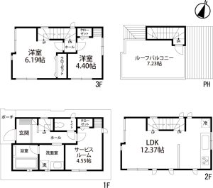 3階建ての住戸で屋上には7.23畳のルーフバルコニーがございます
