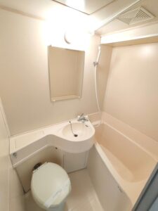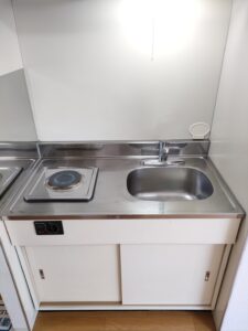 3点ユニットバス、ミニキッチン(コンロは電気コンロ)付きです。