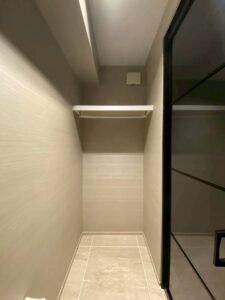 玄関入ってすぐの所にハンガーラックやスーツケース、