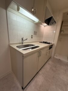 📍キッチンはガスの2口コンロとグリル付きで充実しています。