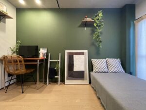壁紙にモスグリーンを使用することにより、