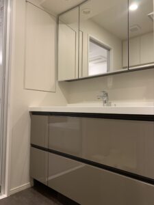 📍日々の支度に便利な3面鏡付き独立洗面台です!