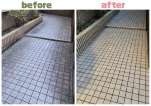 地面の黒ずんだ汚れが無くなり